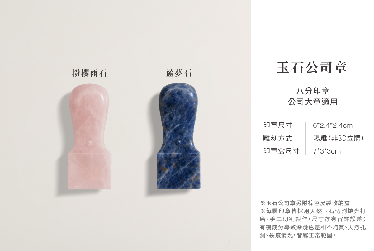 A:一般人姓名2~4字都有,因此我們也有做到最多4個字的印章,而兩個字的話,為了3D立體美觀,側面會再加”印”字。而加印字是各個銀行開戶、簽約都可以接受的印鑑。