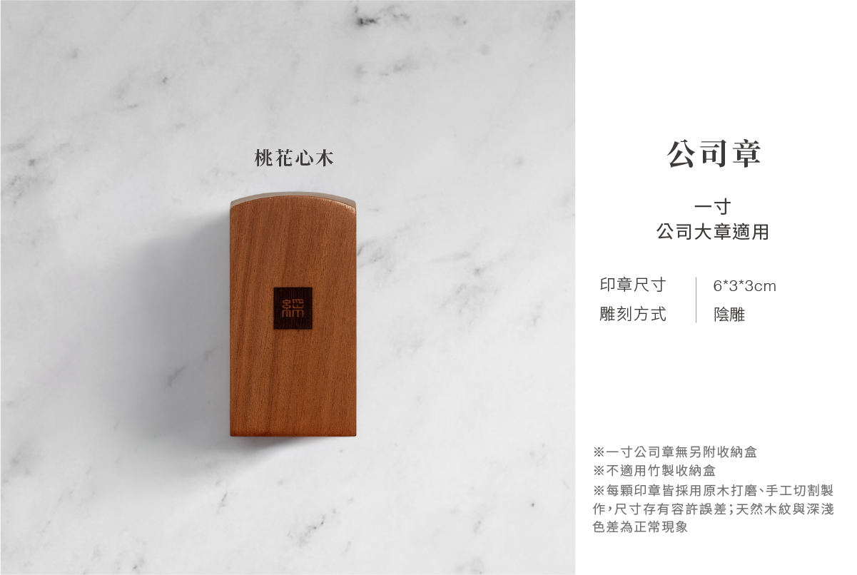 • 每顆印章製作採用天然木材,依取用部位不同,會有色澤深淺及紋理落差,此為正常情形;照片顏色為大略參考,以收到實品為主