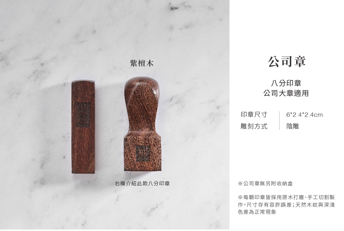 A:我們選用的材質都是頂級的木頭,印面較不易磨損,經過幾十年後蓋出來的名字還是一樣,為了保持品質一致,我們沒有提供這樣的服務。